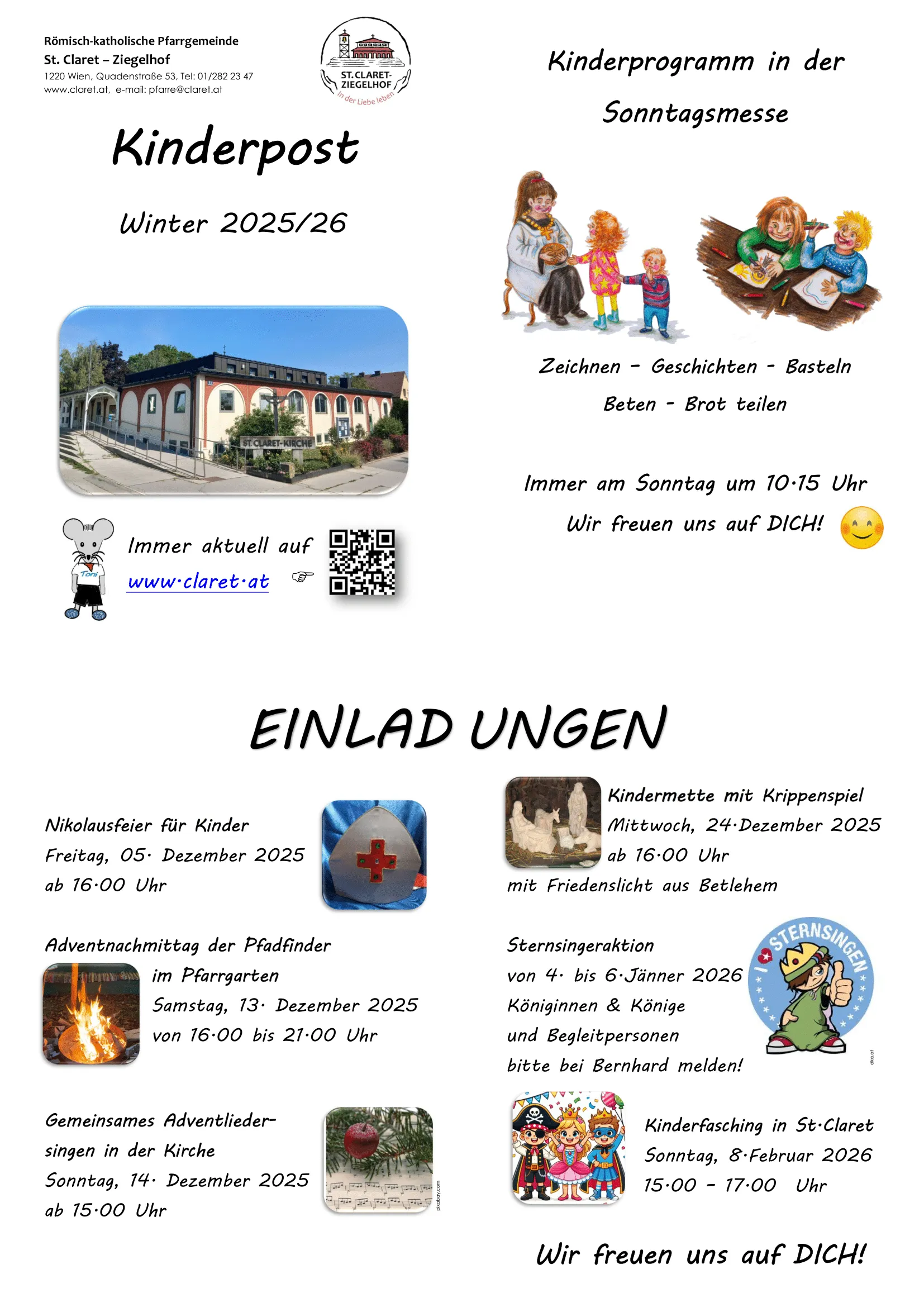 Die Kinderpost enthält besondere Einladungen und Infos für Kinder. Sie kommt drei- bis viermal im Jahr heraus und richtet sich direkt an unsere jüngsten Gemeindemitglieder.